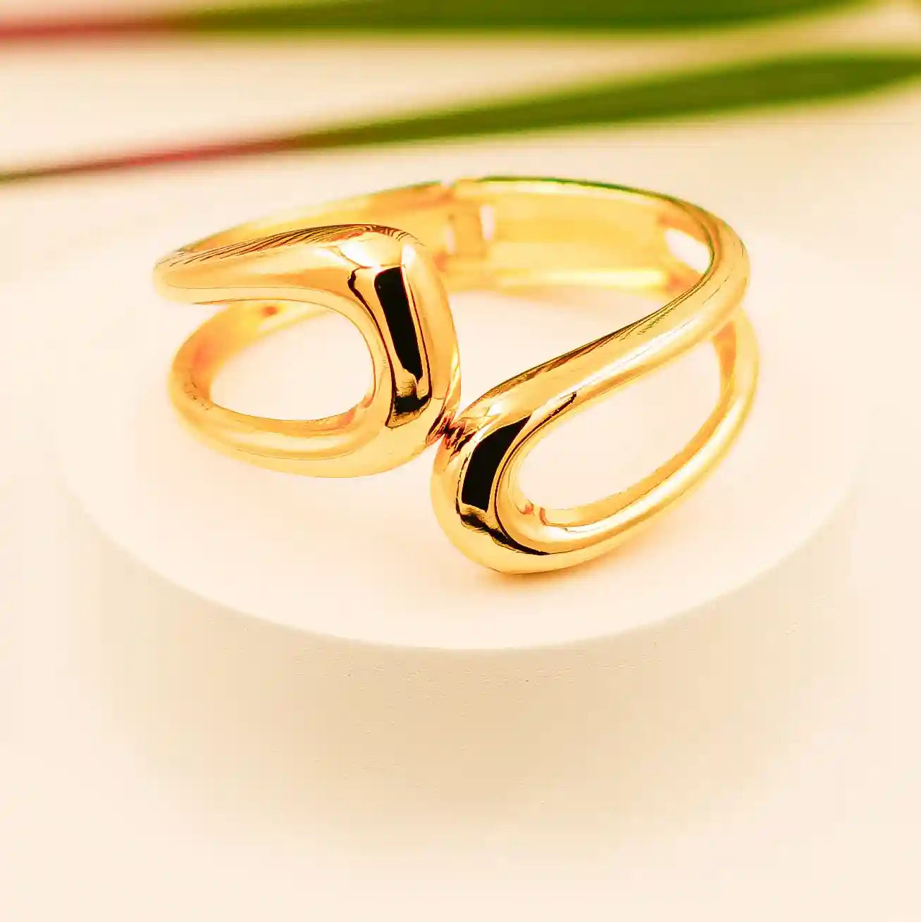 Elevate your style with this modern open-loop gold plated bracelet, designed for women who appreciate the perfect blend of sophistication and contemporary elegance. Featuring a sleek, asymmetrical open-loop design, this statement cuff bracelet is crafted from high-quality metal with a mirror-polished 18K gold plating for a radiant, long-lasting shine.