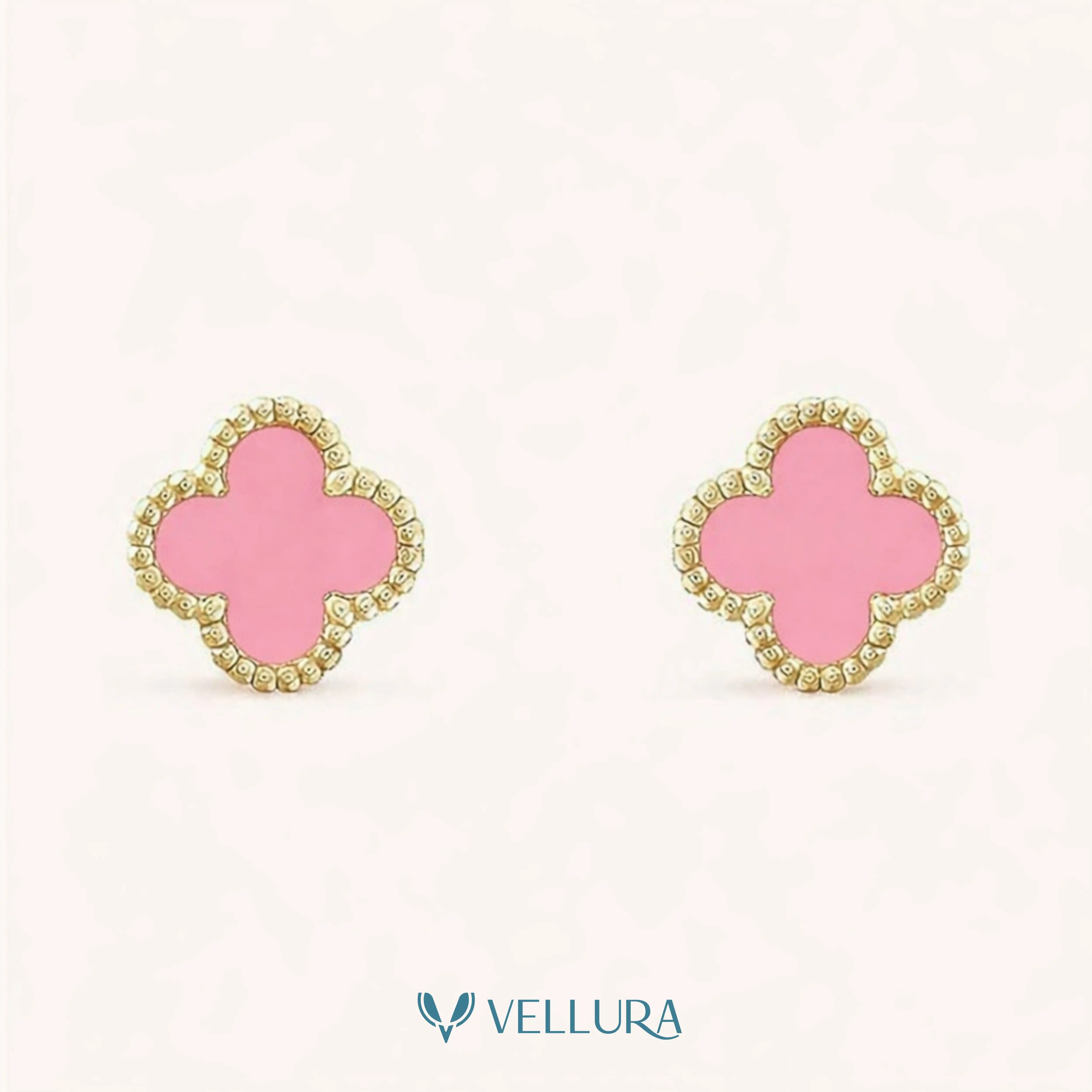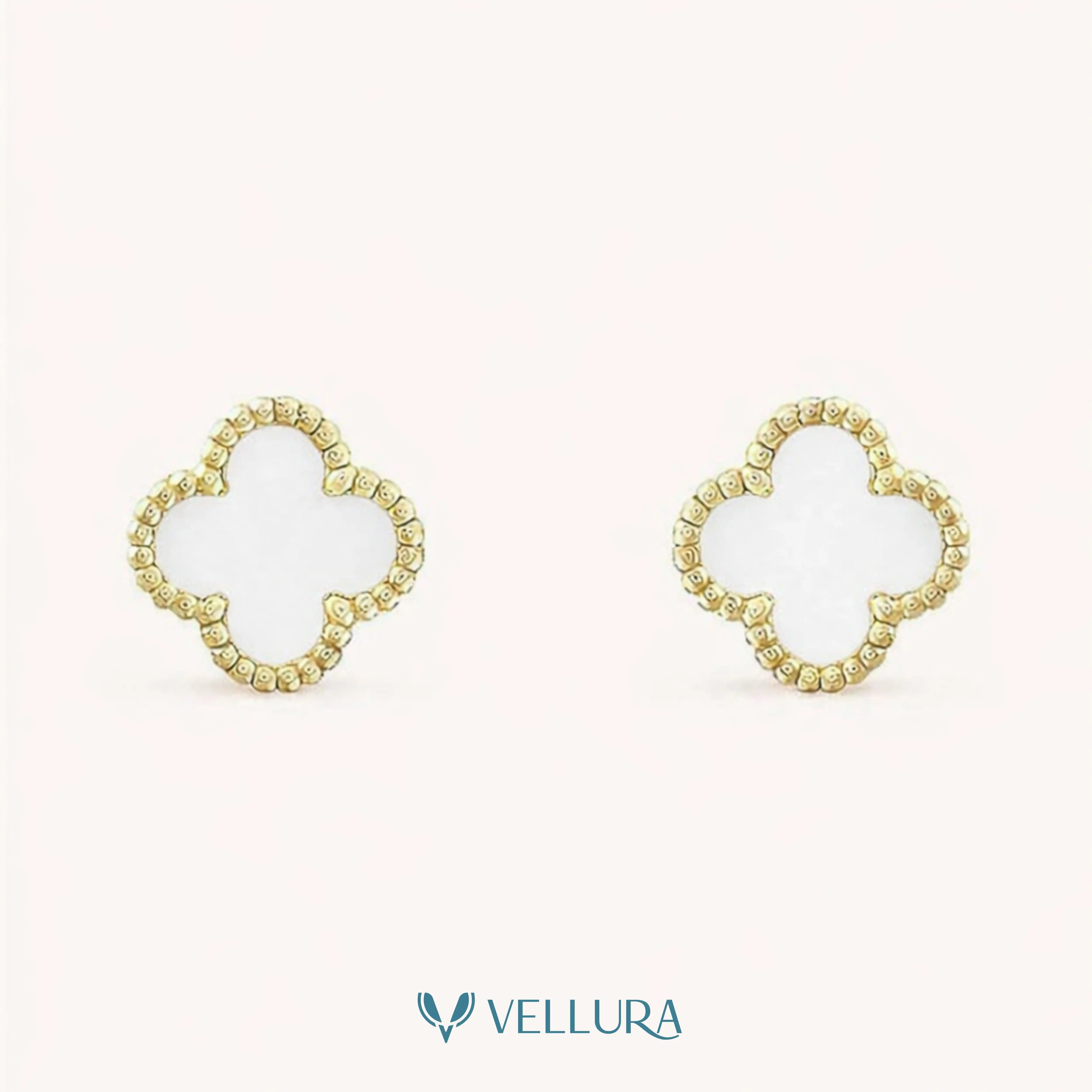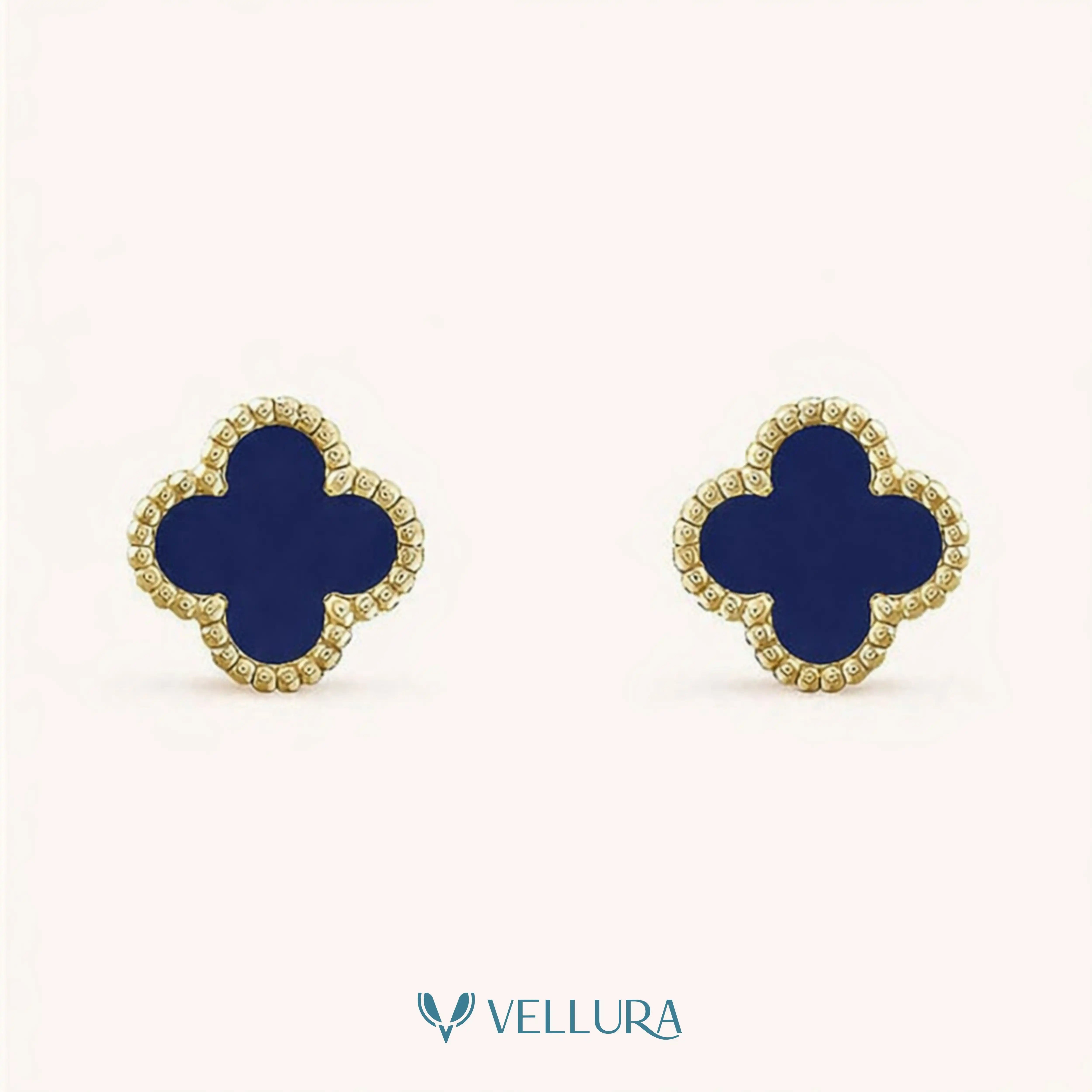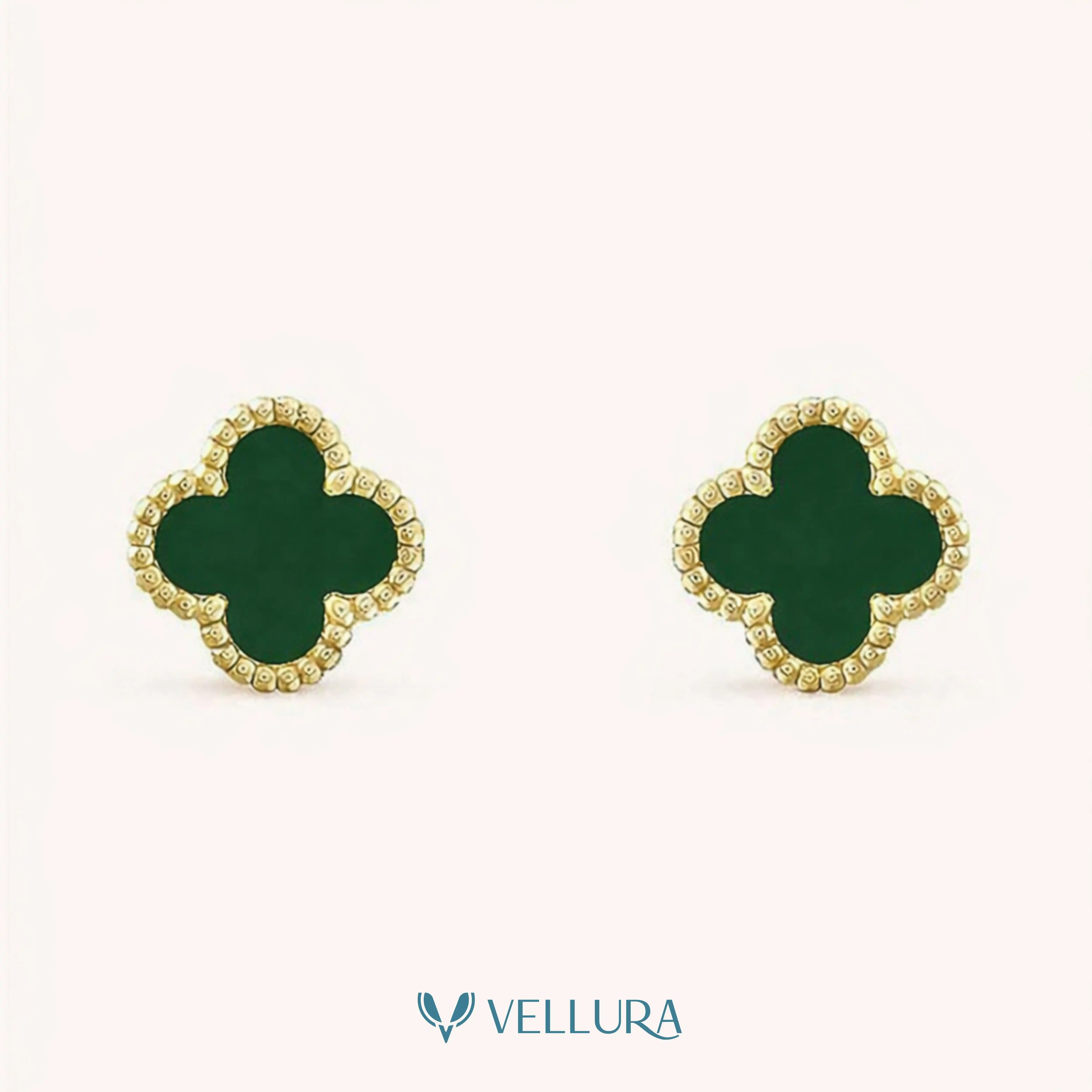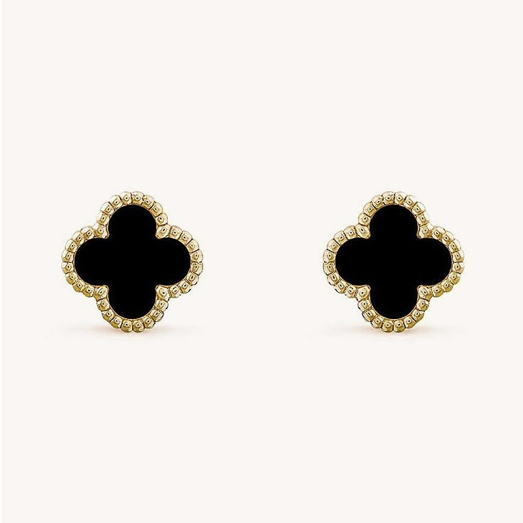 These elegant Van Cleef-inspired black clover stud earrings embody timeless sophistication with a modern edge. Crafted with a glossy black inlay set in a four-leaf clover design, the studs are framed by a delicately beaded gold border that enhances their luxurious appeal. Lightweight and versatile, these earrings are designed with anti-tarnish technology, ensuring they maintain their radiant shine and deep black finish over time. Perfect for both everyday wear and special occasions, they symbolize understated elegance and classic style.