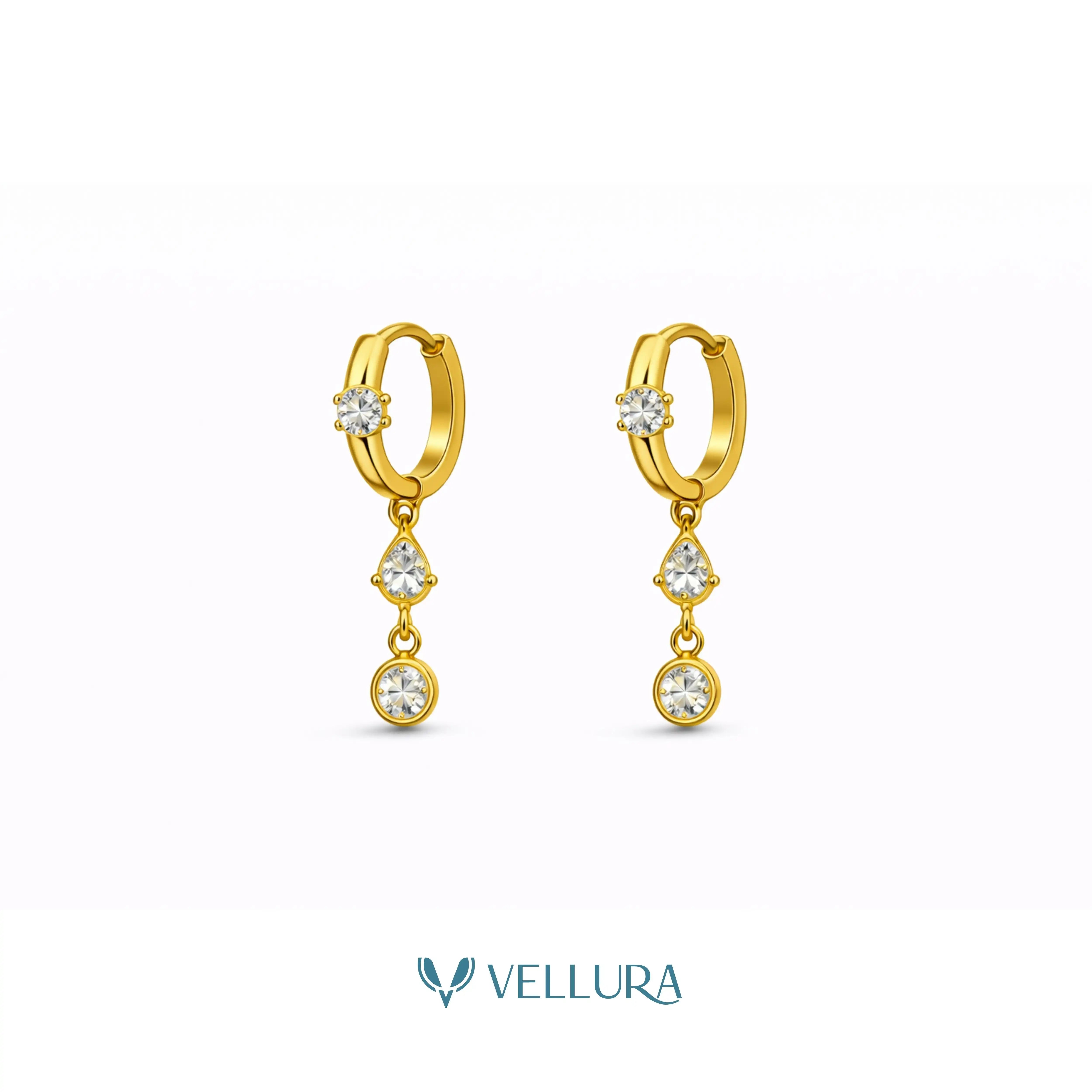 Graceful, minimal, and effortlessly refined — the Vellura Gold Crystal Drop Huggie Earrings are designed to add subtle sparkle to your everyday style. Featuring a sleek gold huggie hoop accented with cascading crystal drops, these earrings offer a perfect balance of elegance and modern charm.