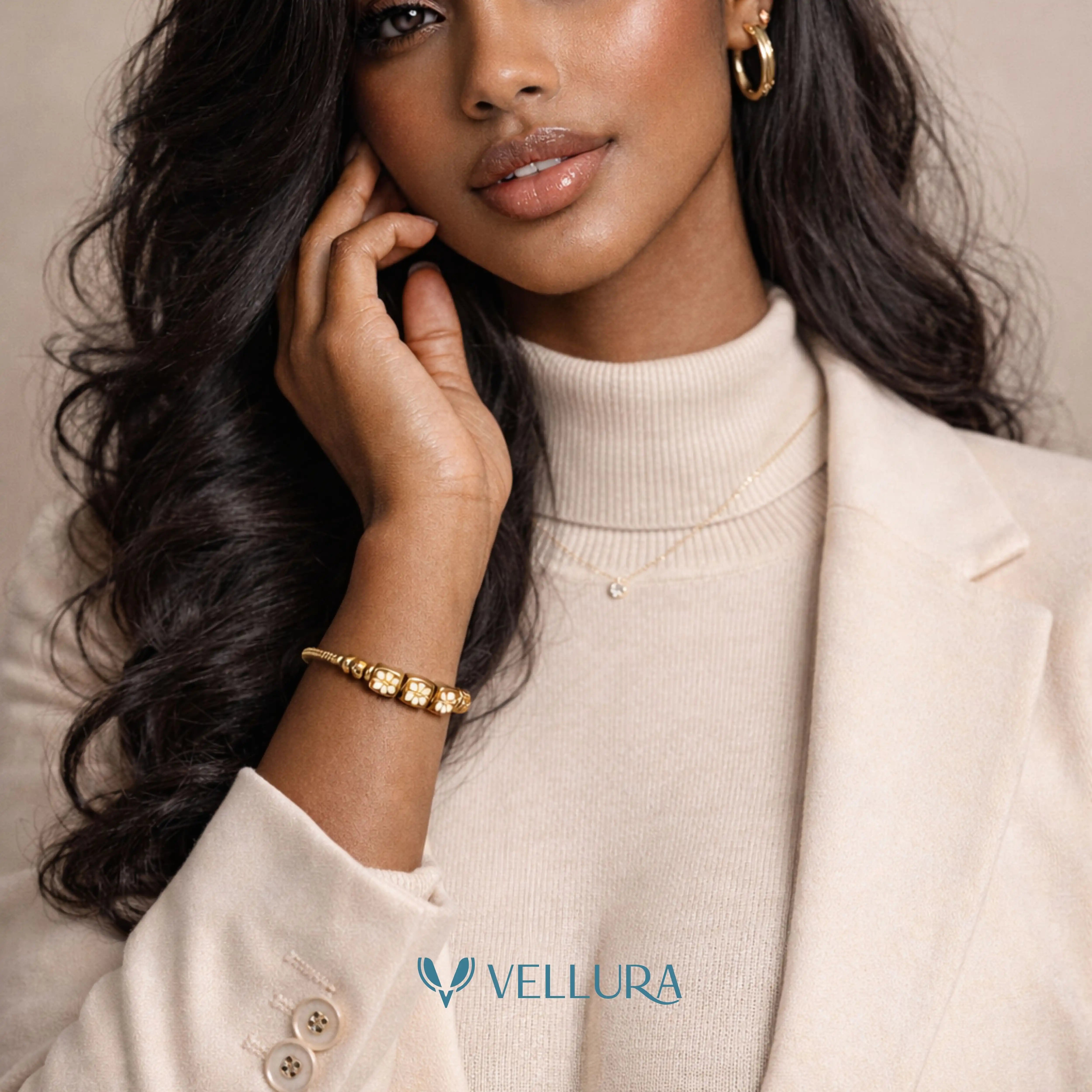 Whether worn solo or stacked with other Vellura favourites, this bracelet adds a subtle yet luxurious charm to your wrist — ideal for gifting or self-indulgence.