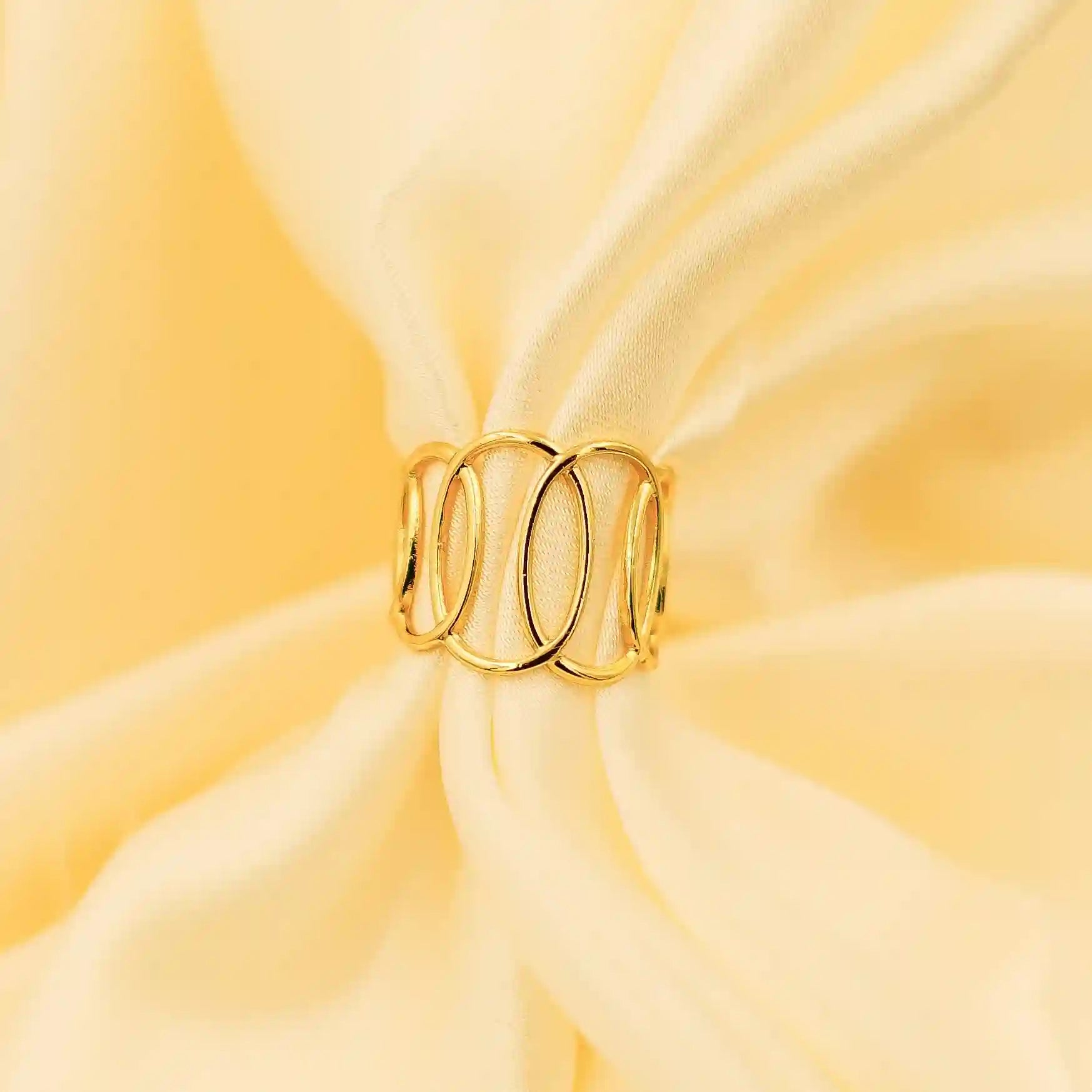 Elevate your style with this anti-tarnish stainless steel gold plated open link ring, a perfect fusion of modern minimalism and timeless elegance. Crafted from premium stainless steel, this ring features a bold open-link design with three smooth, interconnected oval loops that create a striking geometric silhouette. The high-quality 18K gold plating delivers a rich, mirror-like shine while ensuring exceptional durability and resistance to tarnish, making it ideal for everyday wear.
