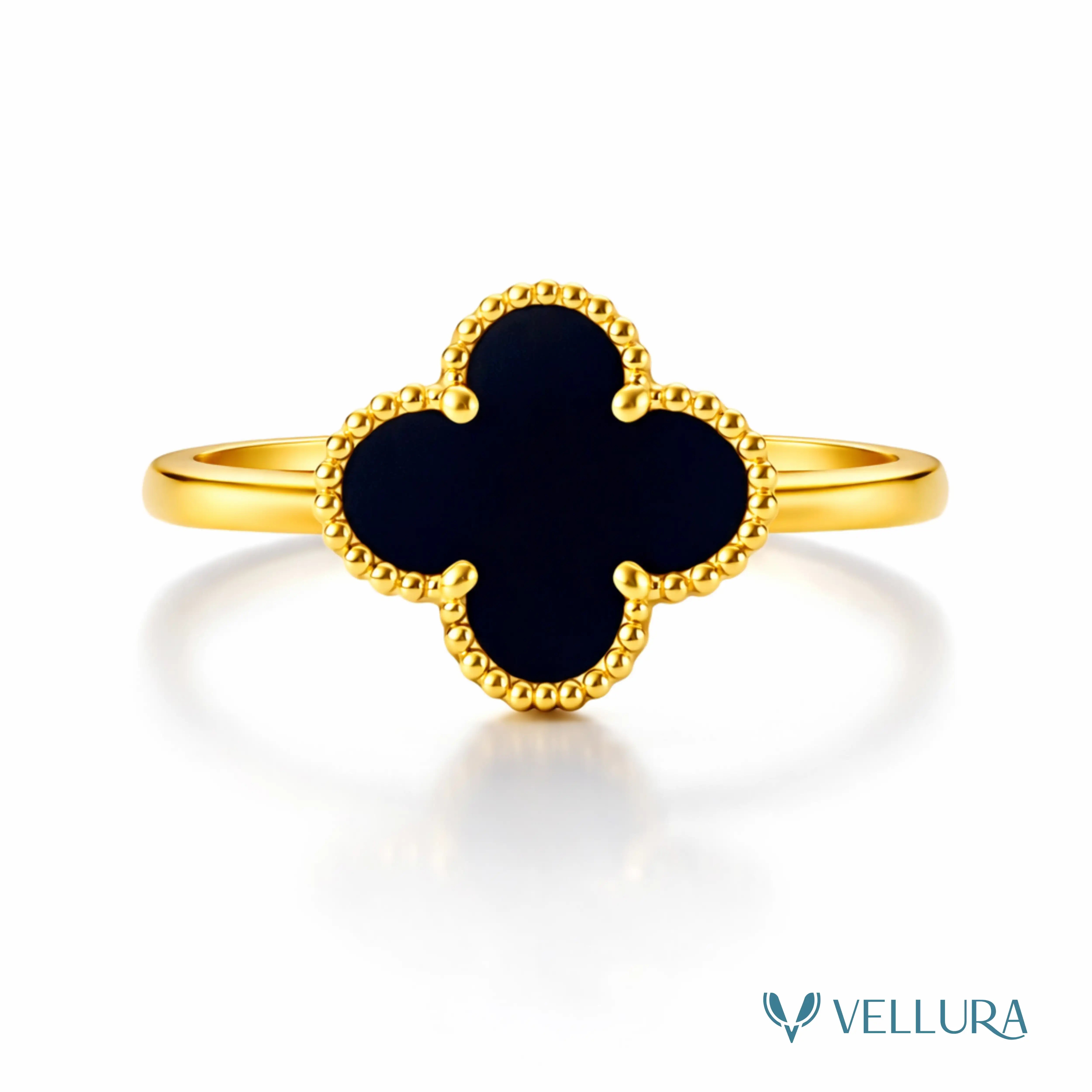 Elevate your elegance with this luxurious Clover Jewellery Set by Vellura Jewellery, featuring a beautifully coordinated necklace, bracelet, ring, and stud earrings. Designed with iconic four-leaf clover motifs, this premium combo set showcases a stunning mix of black onyx, malachite green, deep red stone, and white mother-of-pearl tones, framed in high-polish gold finish with delicate beaded detailing.