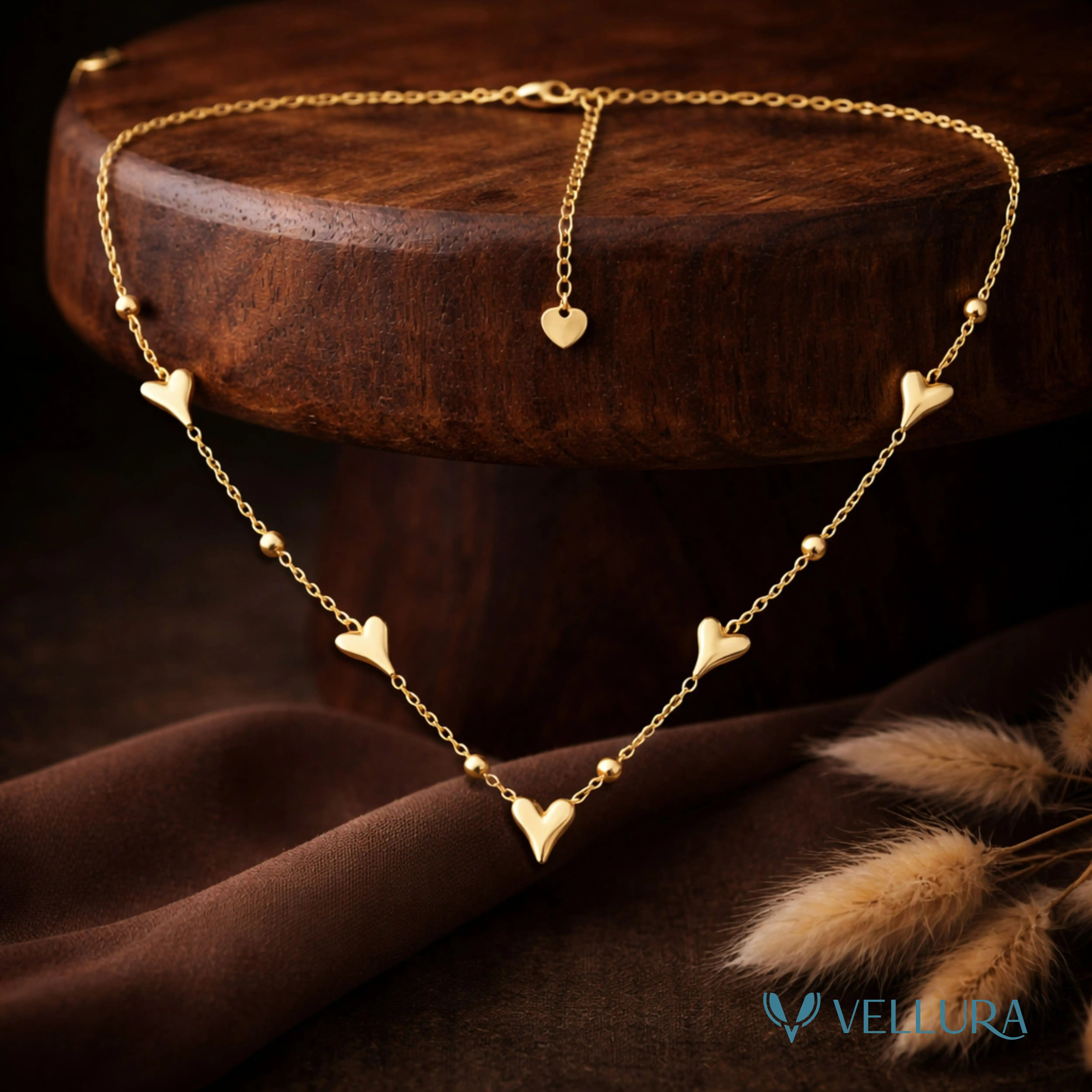 Celebrate love in its purest form with the Vellura Heart Charm Pendant Necklace & Earrings Set, a beautifully coordinated jewellery set designed to express elegance, romance, and everyday luxury. Featuring delicate polished heart motifs placed gracefully along a fine gold-finish chain, this set blends minimal design with timeless charm.