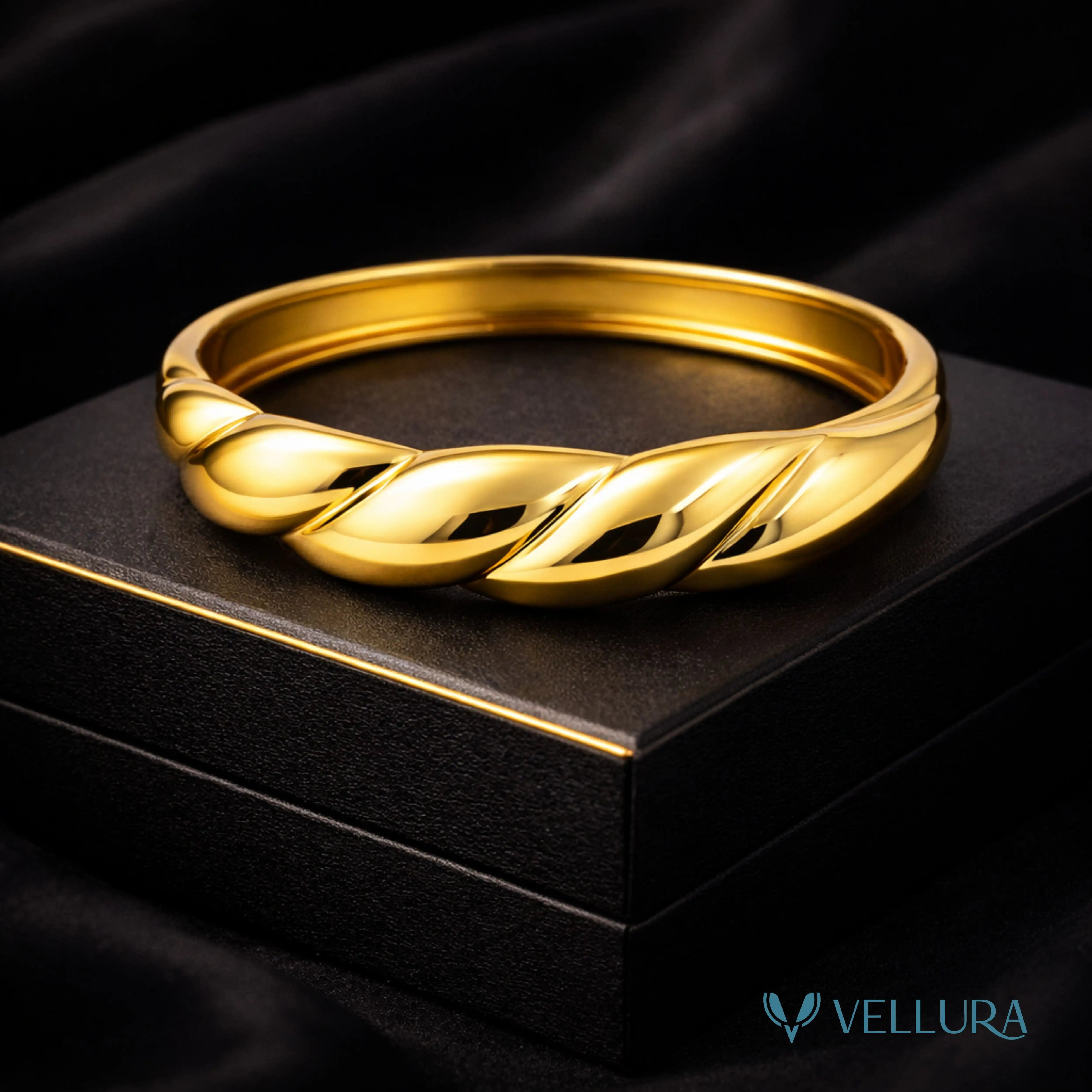 Perfect as a luxury gift or a personal style statement, this gold bracelet complements both traditional and contemporary outfits. Its sleek, minimal design makes it an ideal choice for stacking with other bangles or wearing solo for understated glamour.